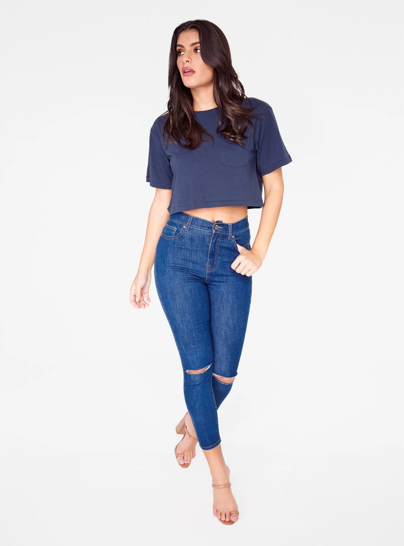 - Basic crew neck cropped t-shirt