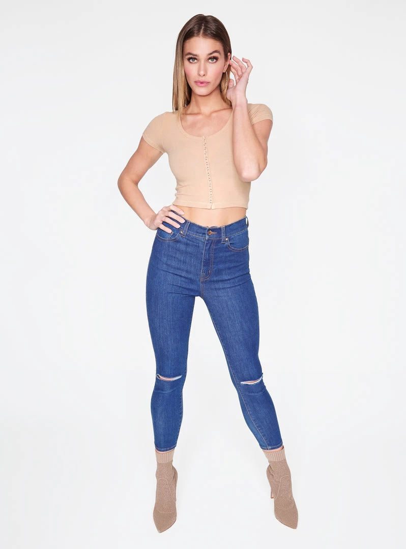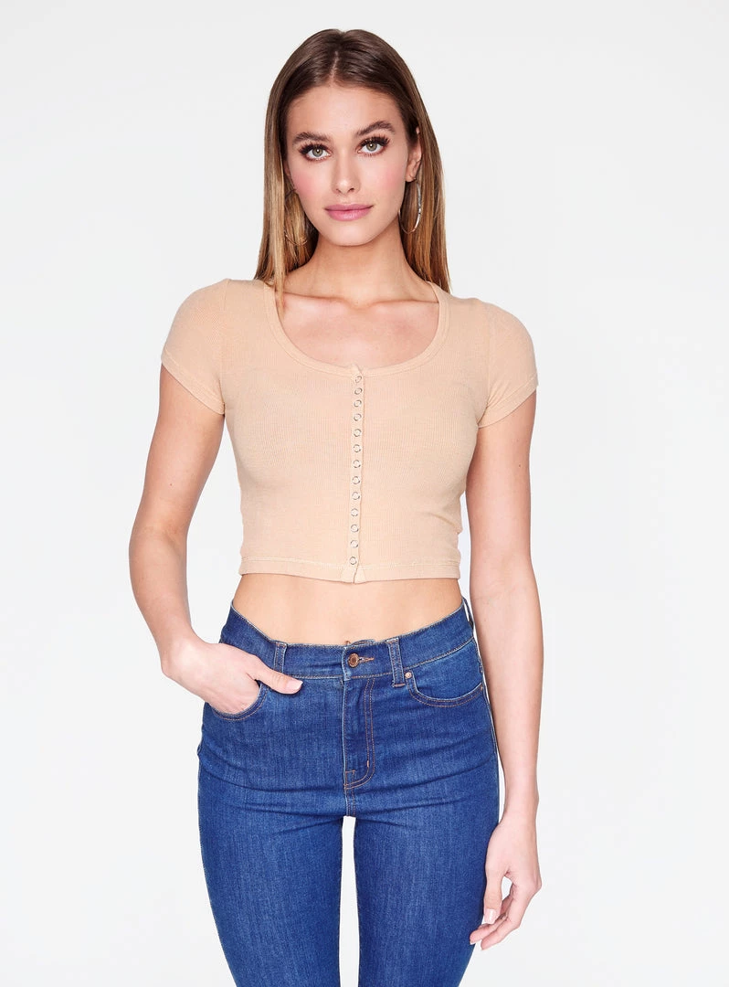 Crop Tops HeyYou Basic Sand Snap Front Ribbed Crop Top
