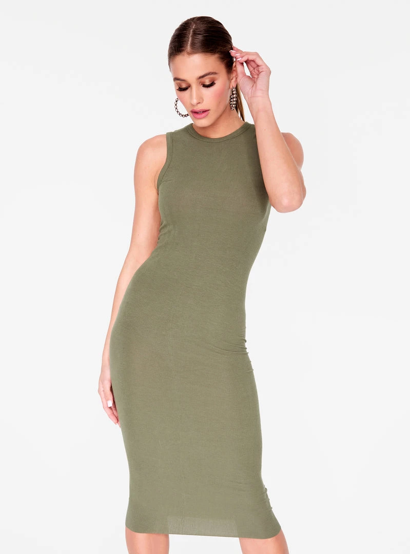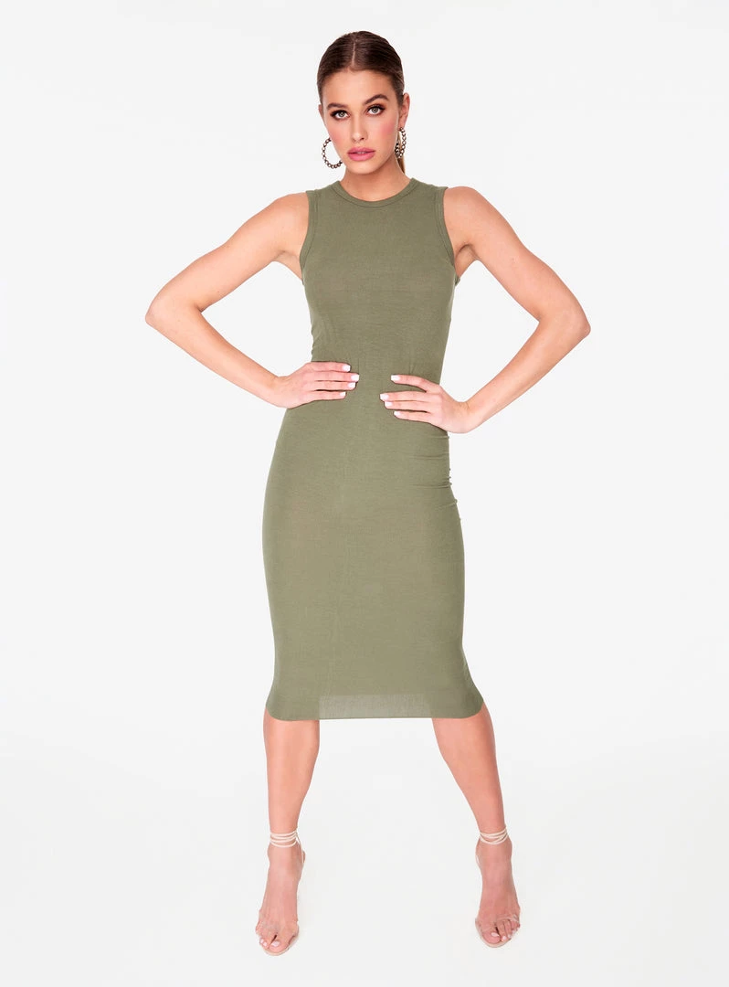 Whether at the office or on a night out, seamlessly dress up or dress down our ribbed crewneck midi dress. Available in four unique neutral shades, this midi-length dress is made with a rib knit fabric and a classic crew neck cut on top.