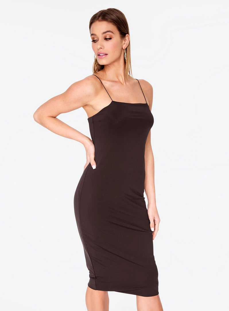 You can’t understate the importance of simplicity and elegance – basically the definition of this midi bodycon dress. It might have ‘basic’ in its name, but with a square neck, perfect midi length, and a subtle sheen, this dress is anything but.