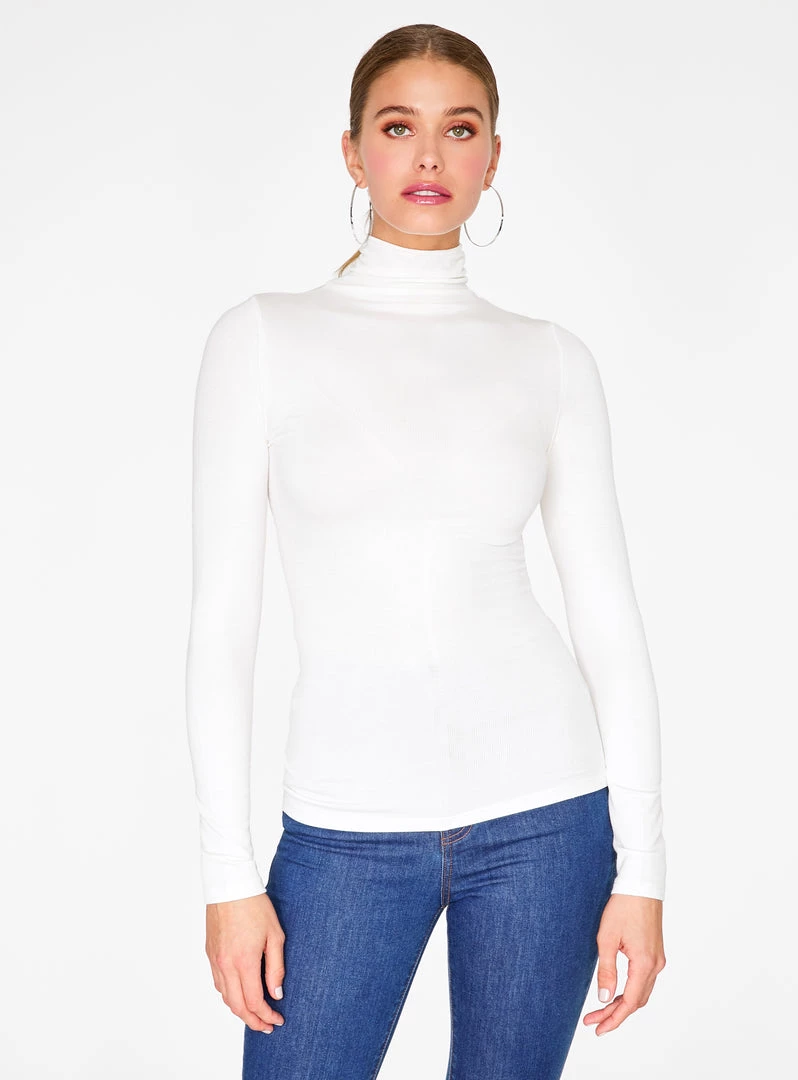 HeyYou Basic White Ribbed Long Sleeve Turtleneck Tank Tops