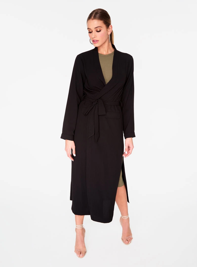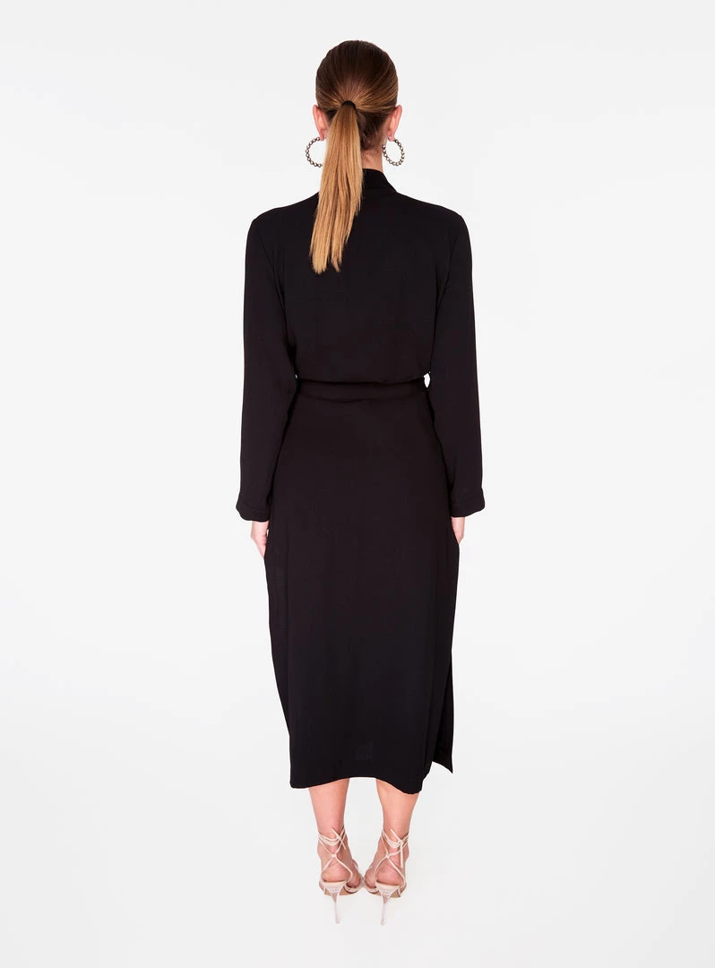 - Long sleeves with belt at waist