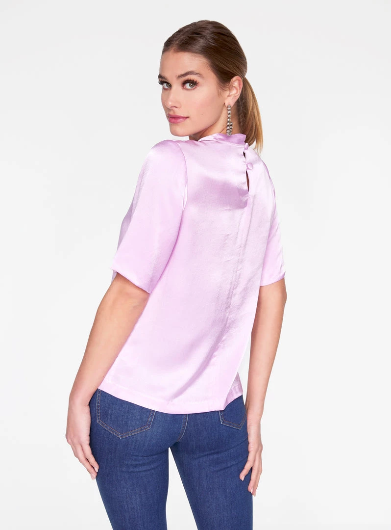 HeyYou Blouses Lavender High Neck Satin Short Sleeve Top