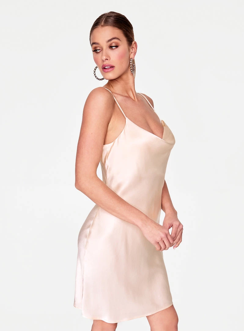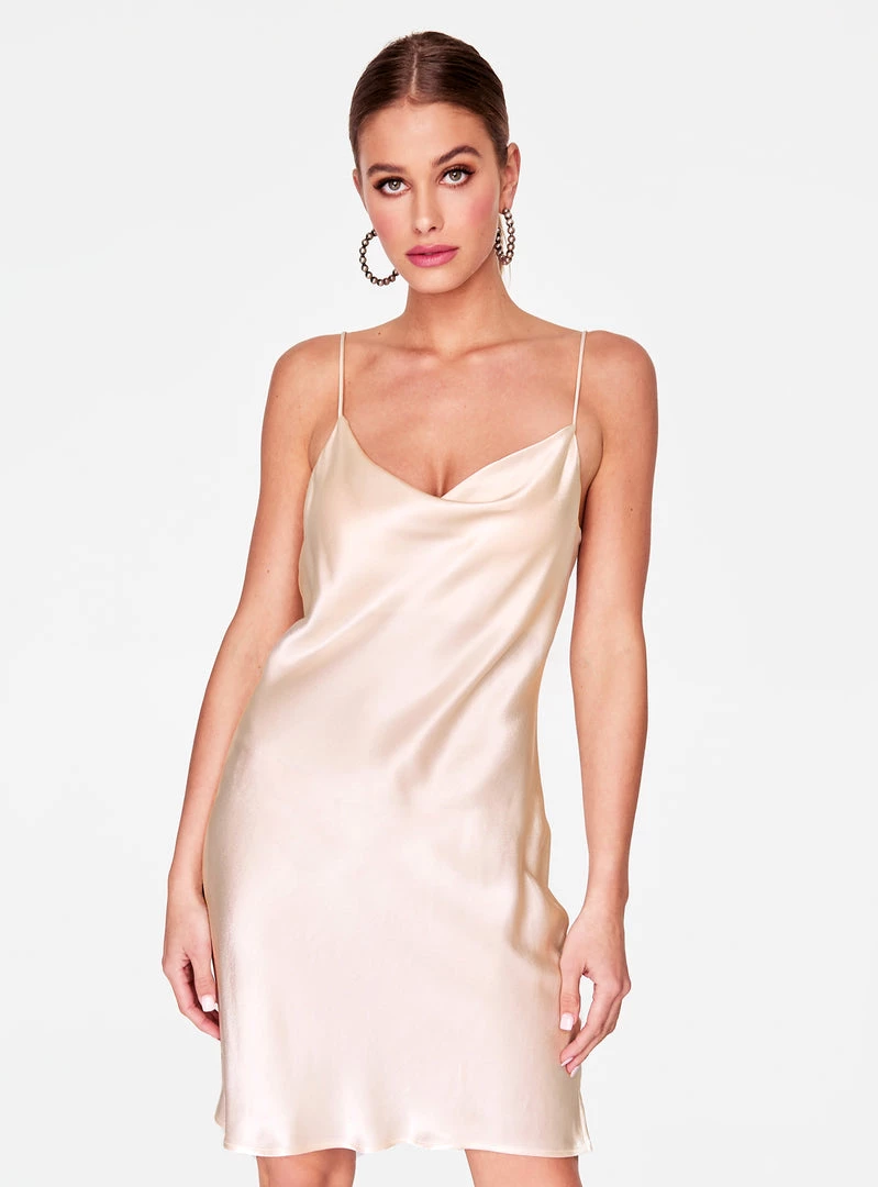 This sexy slip dress is available in a range of colors from classic neutrals to head turning jewel tones. The satin fabric and perfectly draped neckline will make this your new go-to number for a night out.