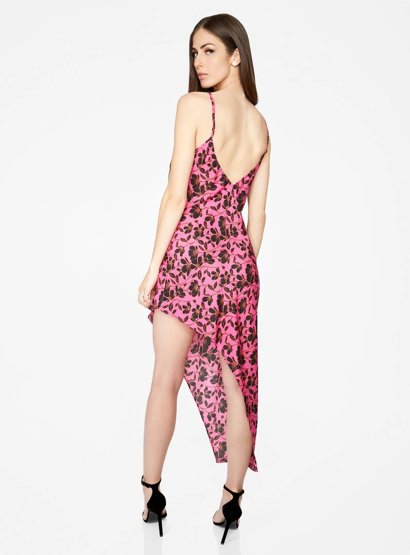 HeyYou Fuchsia And Black Asymmetric Floral Dress