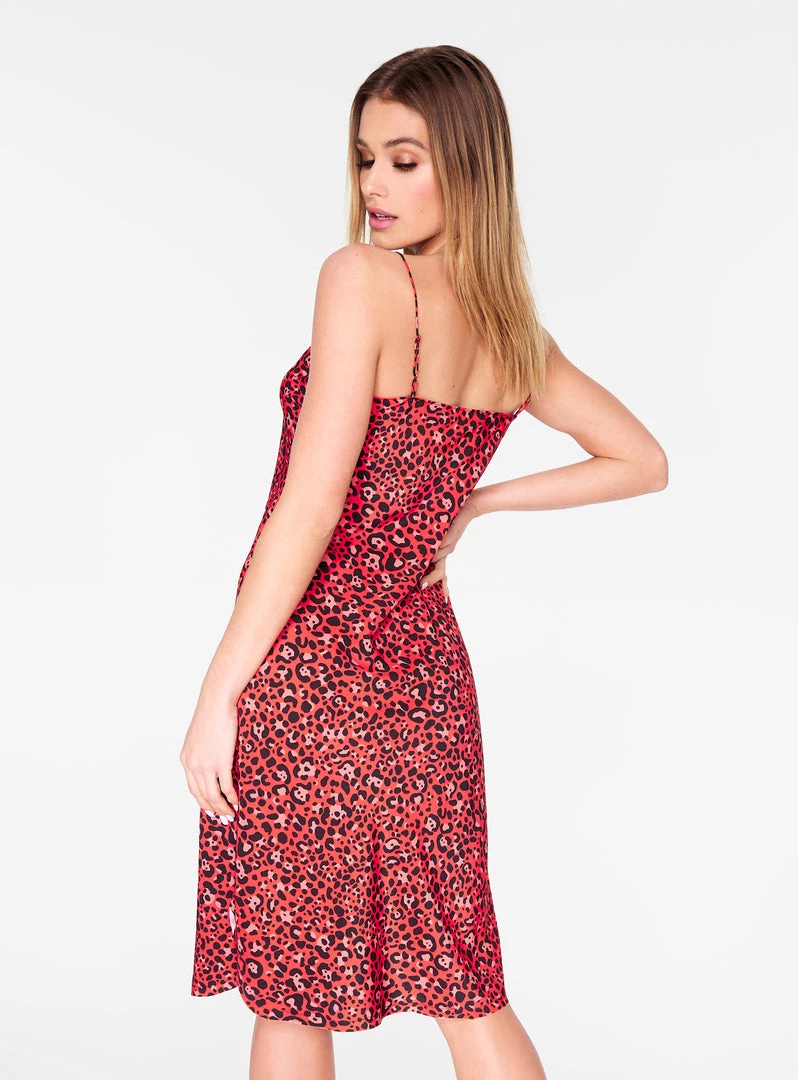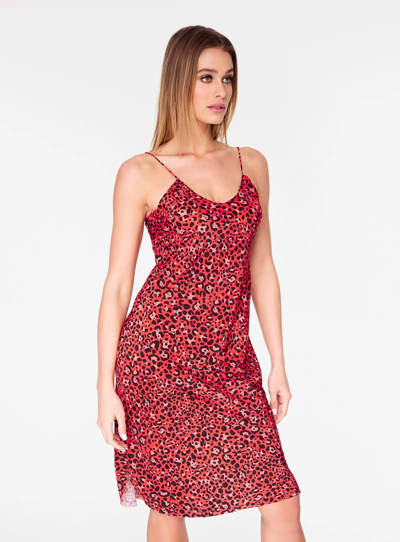 Channel your inner goddess with this super-sexy strappy slip dress in a range of striking colors and prints. A midi length cut, raw hem finish, and flattering V-neck add just the right amount of refined simplicity and the adjustable spaghetti straps promise a perfect fit.