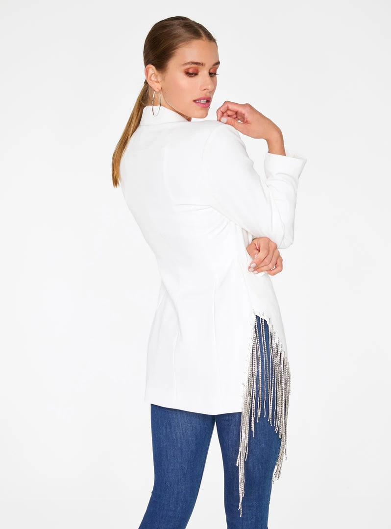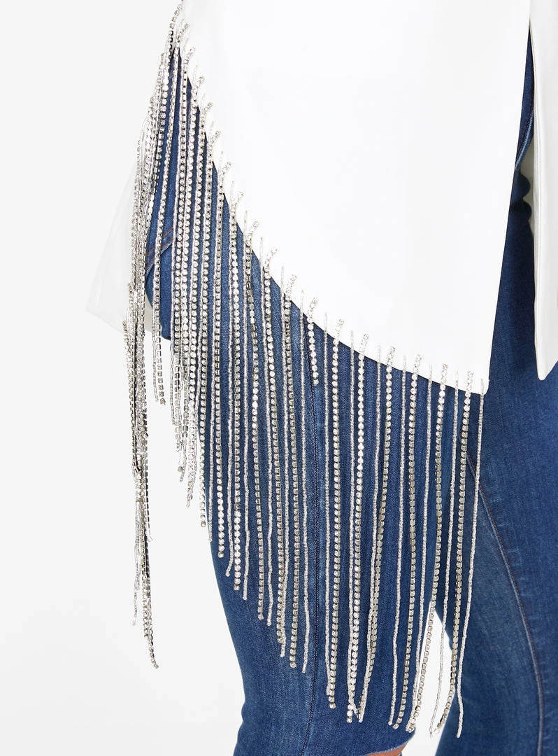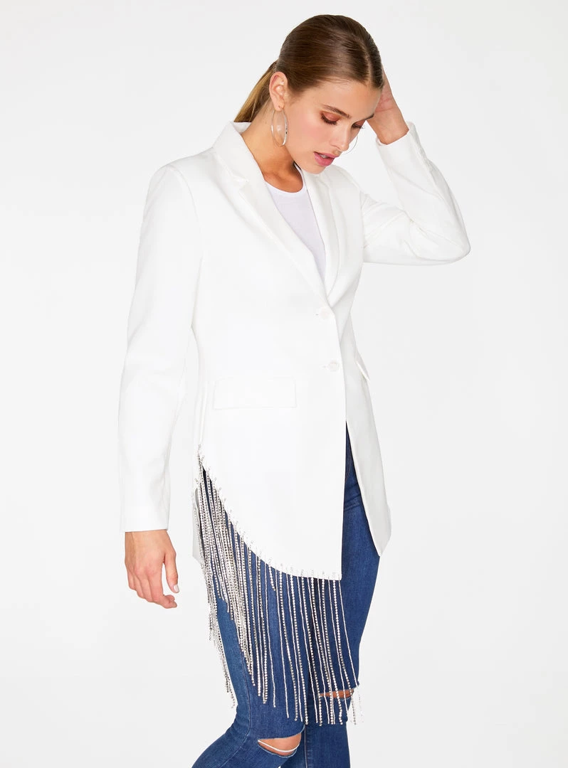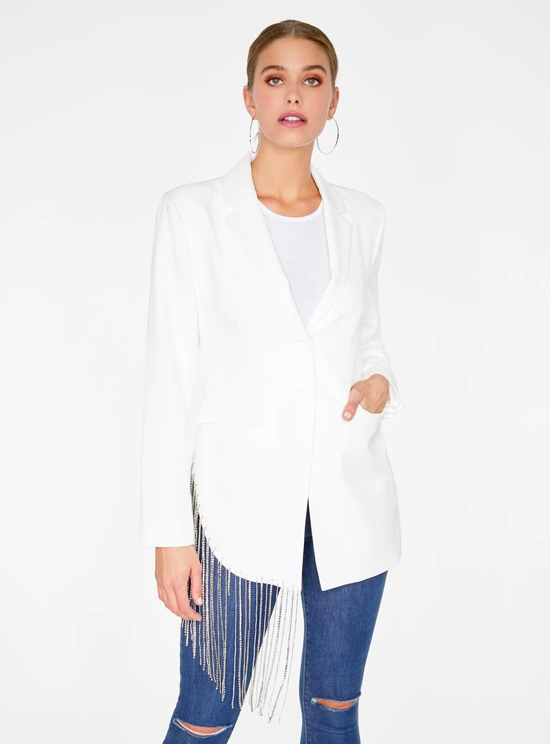 HeyYou Off White Beaded Fringe Asymmetrical Blazer
