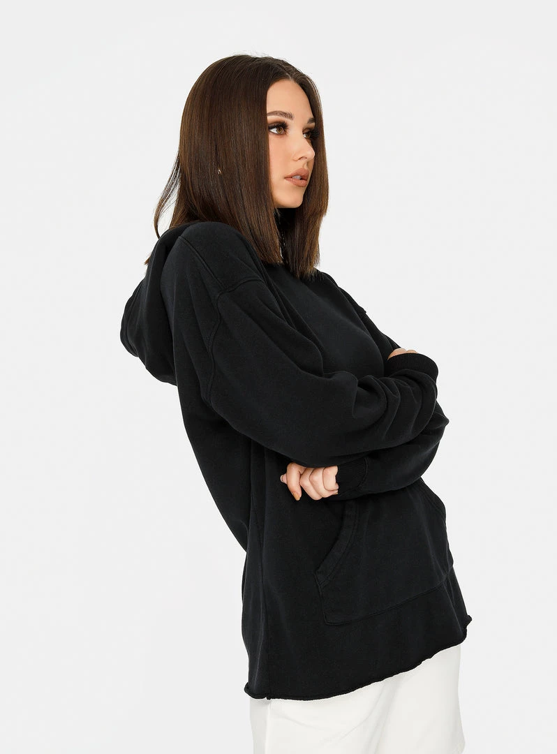 The ultimate boyfriend hoodie. Perfectly oversized, comfy, and cozy – for days when you want to look good without even trying. Wear with your favorite leggings, or denim mini skirt.Â
