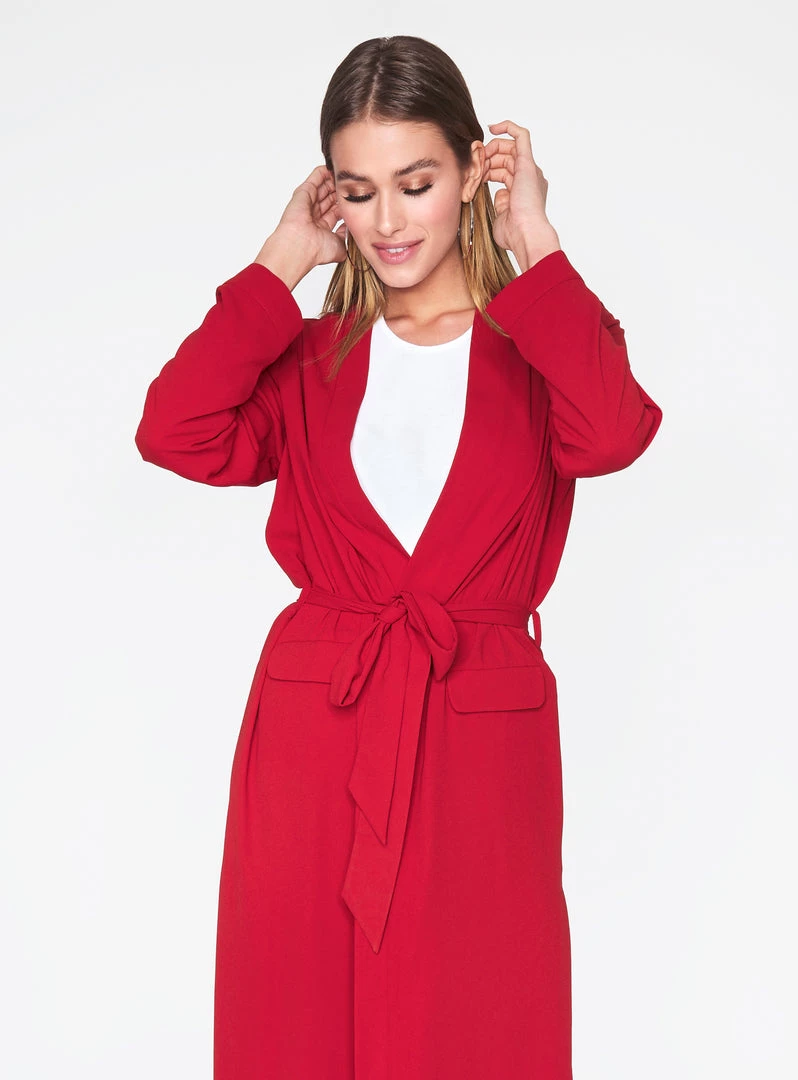 - Long sleeves with belt at waist