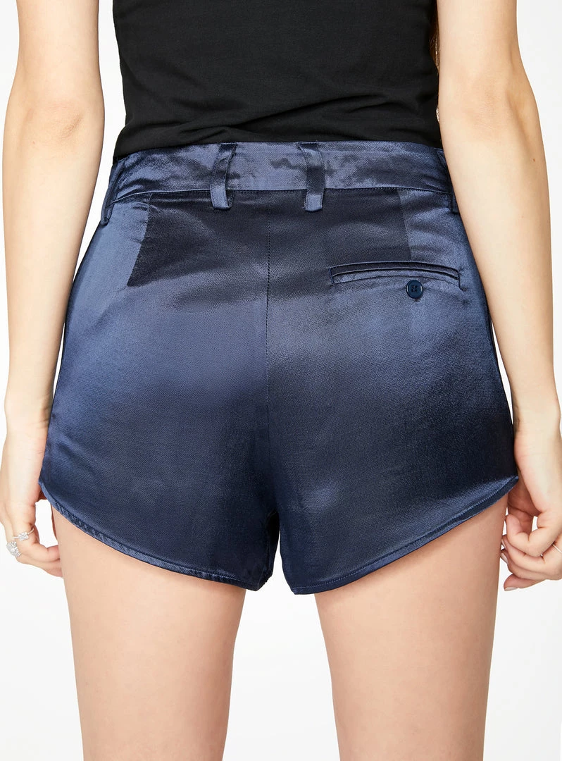 HeyYou Shorts Navy Curved Hem Satin Short