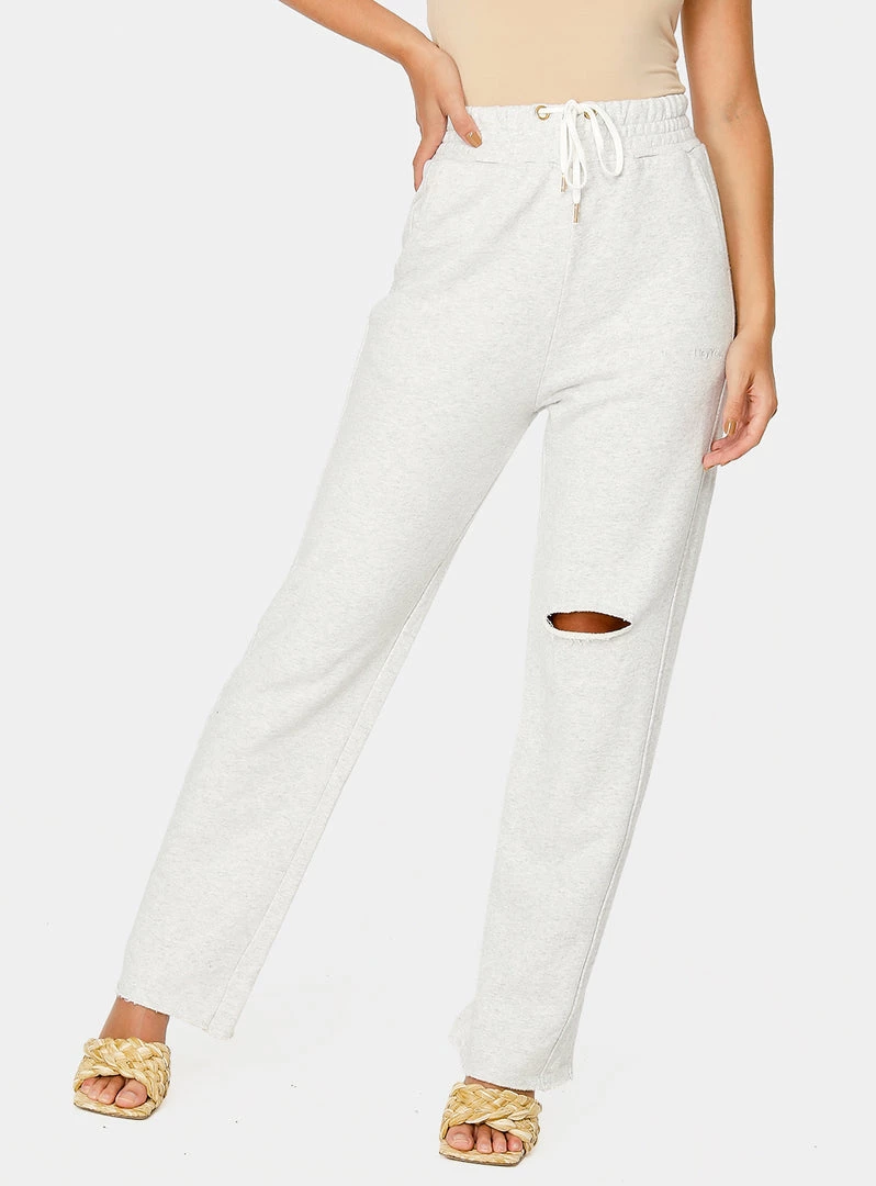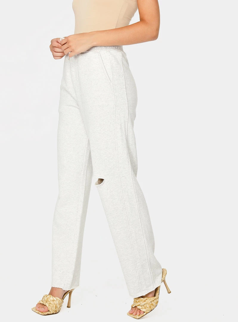 Comfort meets style. The wide leg and distressed detail puts an edgy spin on the classic jogger pants. A cool statement piece you can wear to a girl’s night out or a casual weekend brunch.Â