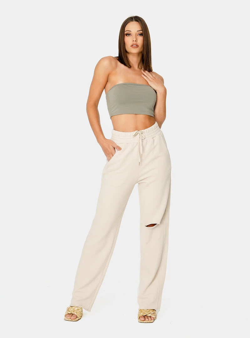 Comfort meets style. The wide leg and distressed detail puts an edgy spin on the classic jogger pants. A cool statement piece you can wear to a girl’s night out or a casual weekend brunch.Â